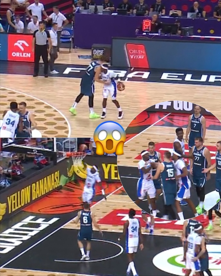 比赛最后时刻发生了戏剧性的一幕,法国后卫弗朗西斯科在和东契奇握手拥抱后,突然冲进篮下上空篮刷分,引发斯洛文尼亚球员不满,双方险些爆发冲突。